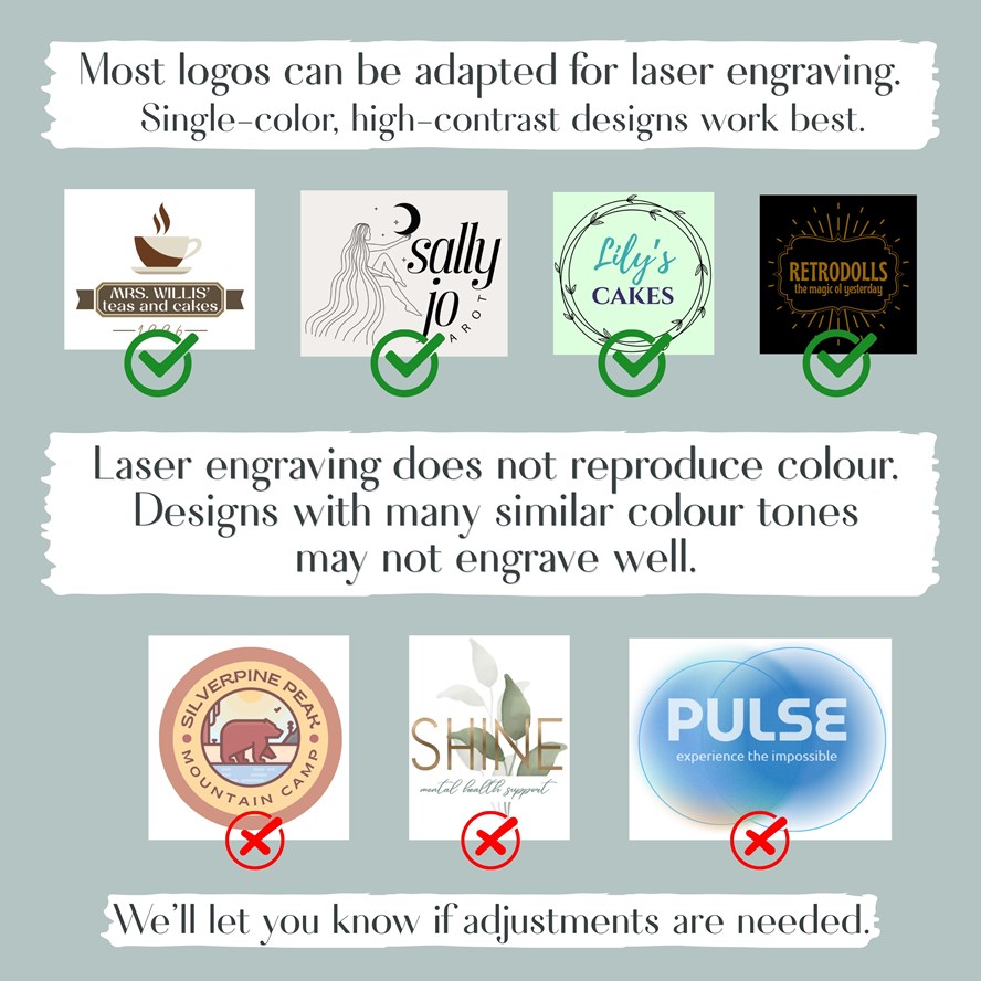 If you wish to have a logo engraved, you will need to send this to us in BLACK & WHITE LINE DRAWING, jpeg or PNG, high resolution.